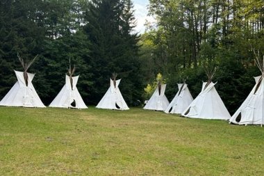 Nebe plné hvězd nezaručíme, ale fajnový tábornický víkend na louce se spaním v teepee, skvělou saunou u potoka a woodcrafterskými aktivitami, to zařídit umíme. Tomáš Hurt a Véna Křepelák z TOM Dakoti z České Lípy mají krásné tábořiště na Naději a rádi vás na louce přivítají a ukážou vám, jak to dělají oni.